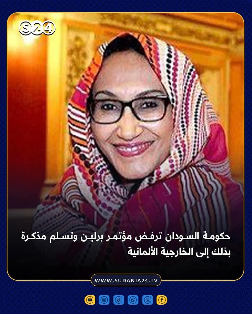وسلمت سفيرة جمهورية السودان لدى برلين، السفيرة إلهام إبراهيم محمد أحمد، مذكرة رسمية إلى وزارة الخارجية الألمانية، نقلت خلالها موقف حكومة السودان الرافض لعقد مؤتمر برلين حول السودان دون مشاركة الحكومة وموافقتها والتشاور معها في كافة الترتيبات.
