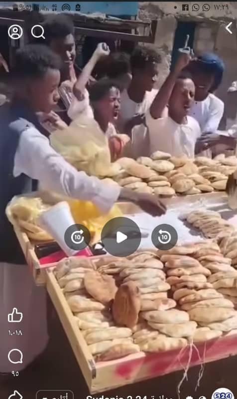 • تفاعل آلاف السودانيين عبر وسائل التواصل الإجتماعي مع مقطع فيديو يظهر من خلاله  بائع خبز وسط “طاولات” الرغيف، ويحيط به جمع غفير من المواطنين لشراء الخبز، ويقوم ببيع (12) رغيفة بمبلغ 1000 جنيه سوداني فقط، في حين سعر ال  (12) رغيفة في السوق 3000 الف جنيه.